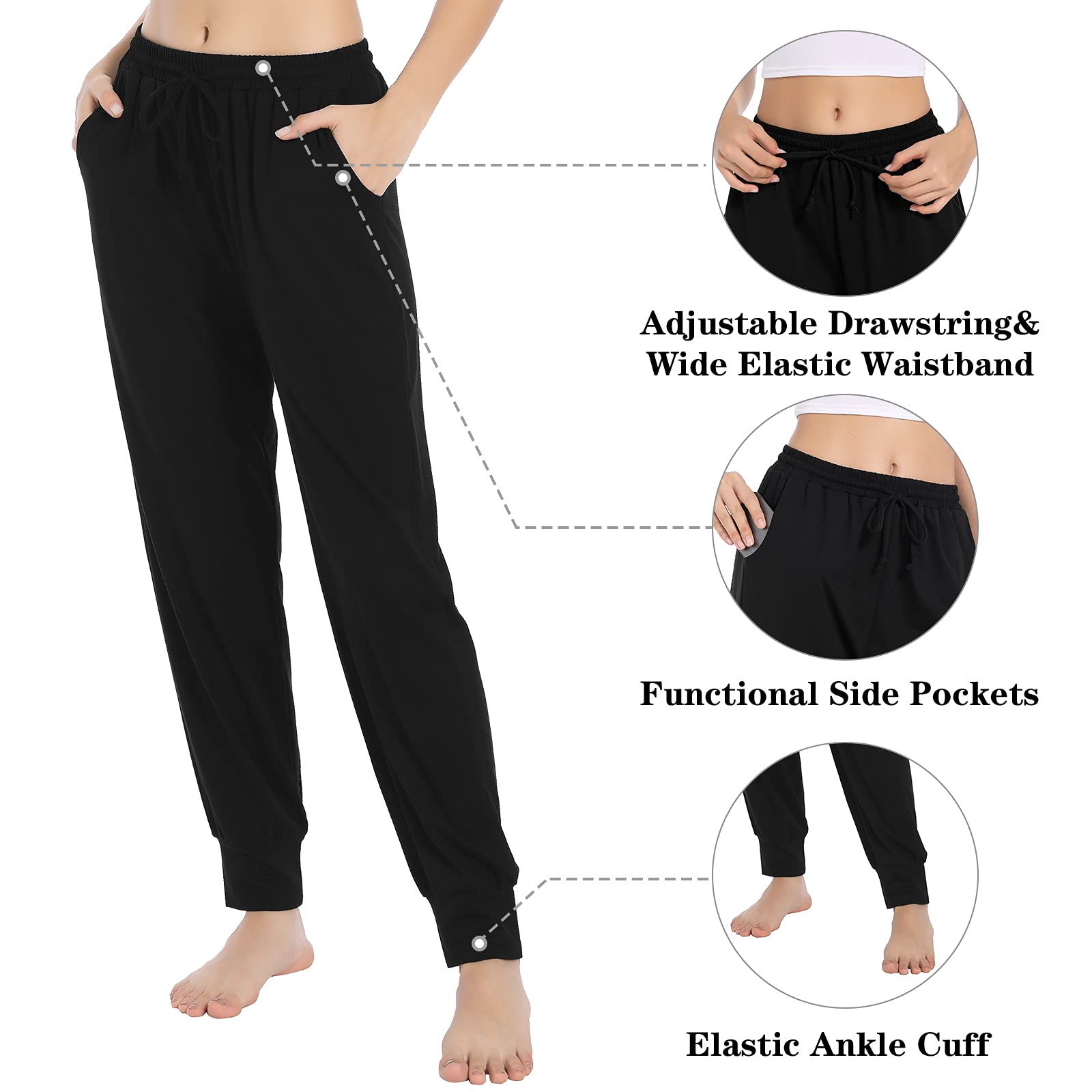- Elastic Drawstring & Pockets Design---Loose jogger pants with drawstring elastic waist, easy to adjust for a better fit. Give you more freedom in your any time. Deep side pockets give you somewhere to keep a hankie, hair elastic, key or cards.